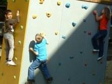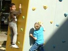 Klettern in der Schule, klettern im Kindergarten, klettern an der Boulderwand.